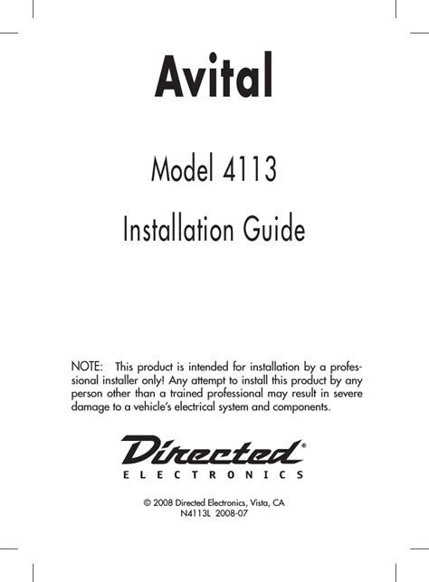 Read AVITAL 4113 INSTALLATION MANUAL Epub ManyBooks